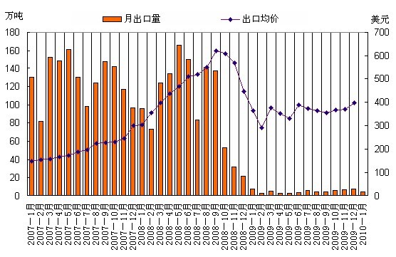 從統(tǒng)計(jì)數(shù)據(jù)來(lái)看,1月份我們焦炭出口量繼續(xù)大幅下降,主要源于我國(guó)高關(guān)稅的限制,焦炭出口企業(yè)配額申報(bào)的門檻也在逐年提高。筆者認(rèn)為,這符合國(guó)家對(duì)焦炭等資源性產(chǎn)品的政策傾向,中國(guó)焦炭生產(chǎn)應(yīng)以滿足國(guó)內(nèi)需求為主。提高焦炭出口門檻,有助于提高企業(yè)出口經(jīng)營(yíng)集中度,減少出口企業(yè)數(shù)量。尤其焦炭產(chǎn)量持續(xù)增長(zhǎng),而出口量相對(duì)萎縮的狀態(tài)下,原有的部分出口資源將轉(zhuǎn)化為內(nèi)銷,從而加大國(guó)內(nèi)焦炭市場(chǎng)的銷售壓力,需要焦化企業(yè)繼續(xù)堅(jiān)持限產(chǎn)保價(jià)政策,山西焦協(xié)率先在年前提出2月限產(chǎn)60%的政策,預(yù)計(jì)河北,山東焦協(xié)也會(huì)相繼出臺(tái)指導(dǎo)意見(jiàn)。而受全球金融危機(jī)影響,歐盟、美國(guó)、日本和韓國(guó)等中國(guó)焦炭的傳統(tǒng)需求國(guó),紛紛縮減鋼鐵產(chǎn)量。需求減少,價(jià)格偏高,使得國(guó)外市場(chǎng)無(wú)法接受國(guó)內(nèi)出口的高價(jià)位焦炭,故此預(yù)計(jì)短期內(nèi)焦炭出口低迷的態(tài)勢(shì)難以好轉(zhuǎn)。